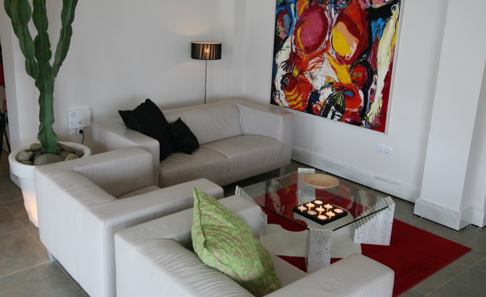 Moderne kunst creëert een artistieke sfeer in een uitgesproken balans tussen modern en klassiek Spaans.