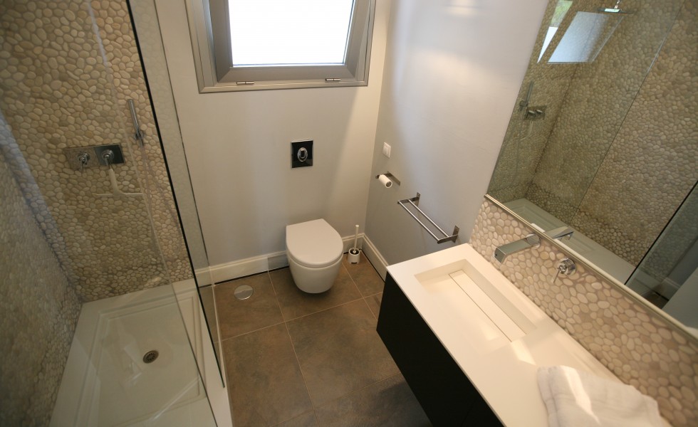 De badkamers zijn uitgerust met grote regendouche of ligbad en afgewerkt met designsanitair. De villa heeft een riante woonkamer met comfortabele zithoek, open eetkamer en Siematic keuken inclusief vaatwasmachine, heteluchtoven en grote koel-vrieskast.
